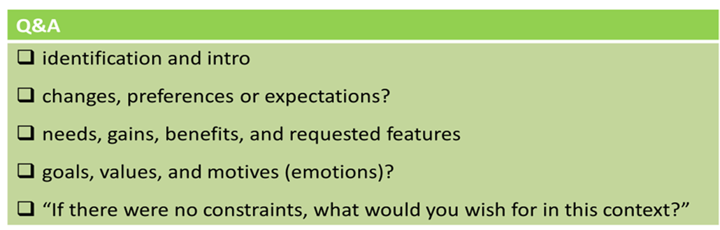 1.     How is the user compensated for their efforts? 2.     Who or what controls the user? 3.     What contexts or circumstances are best for the user to fulfill their tasks or satisfy their needs? 4.     How autonomous is the user? What kind of support do they get? 5.     What influences them? |